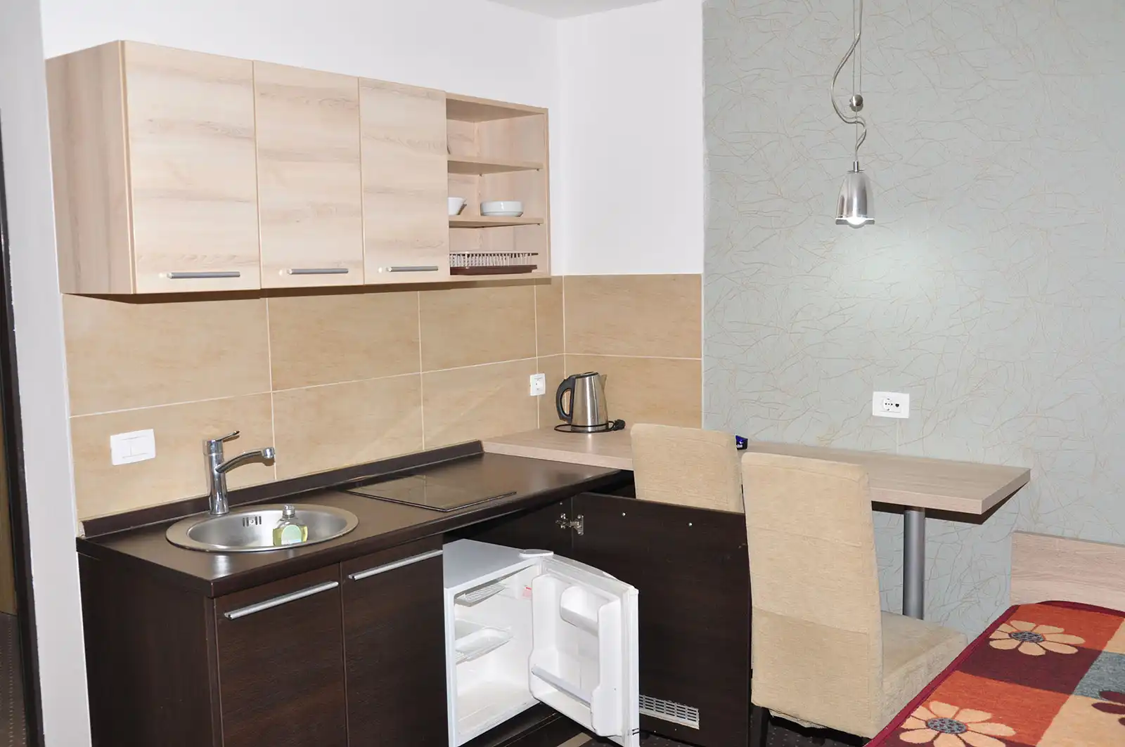 Konaci EXIT apartmani locirani su u središtu turističkog kompleksa i Nacionalnog parka Kopaonik, u neposrednoj blizini ski staza, gde navedeni kompleks predstavlja centar svih aktuelnih događaja na Kopaoniku. Smeštajni kapaciteti se nalaze u konacima Maglič, Brvenik i Angella. Svaka jedinica ima potpuno opremljenu kuhinju sa mikrotalasnom pećnicom i prostor za sedenje sa kaučem. Takođe sadrži flat-screen TV i sopstveno kupatilo sa tušem i fenom za kosu. Gosti apartmana mogu uživati u à-la-carte doručku. Okolina je pogodna za skijanje i vožnju bicikla. Gostima su u okviru objekta na raspolaganju usluga iznajmljivanja ski-opreme, direktan pristup ski-stazi i punkt za prodaju ski-pasova.